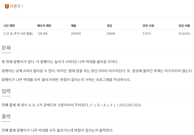 일단 A, B, V값을 받고 조건문을 보면서 생각을 해봤는데